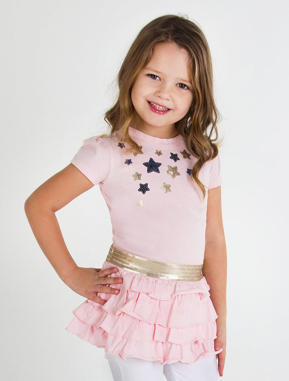 Описание: Платье из хлопоквого трикотажа, декорированное принтом и пайетками.