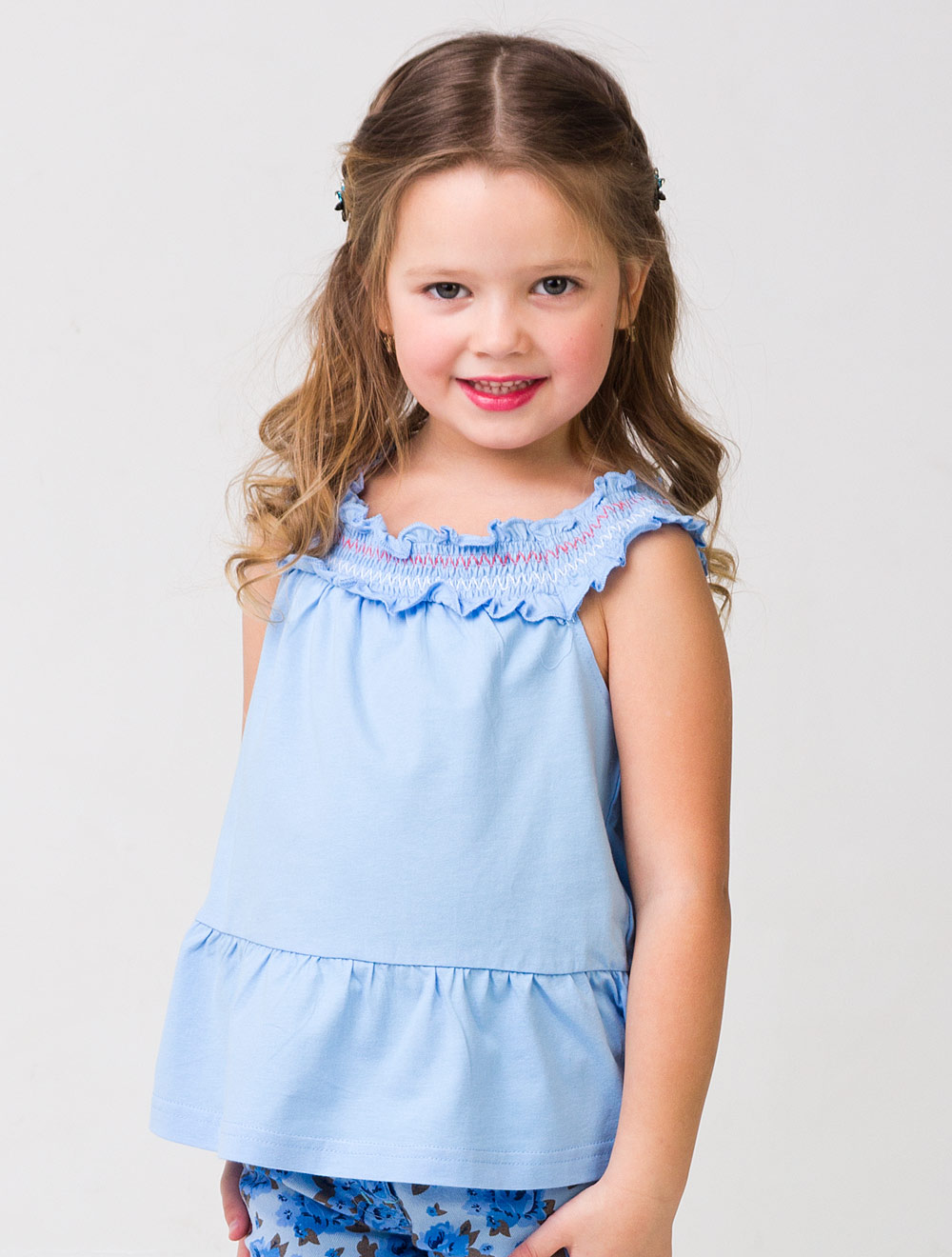 Описание: верхняя кокетка с бретелями на сборке из эластичных нитей и с вышивкой