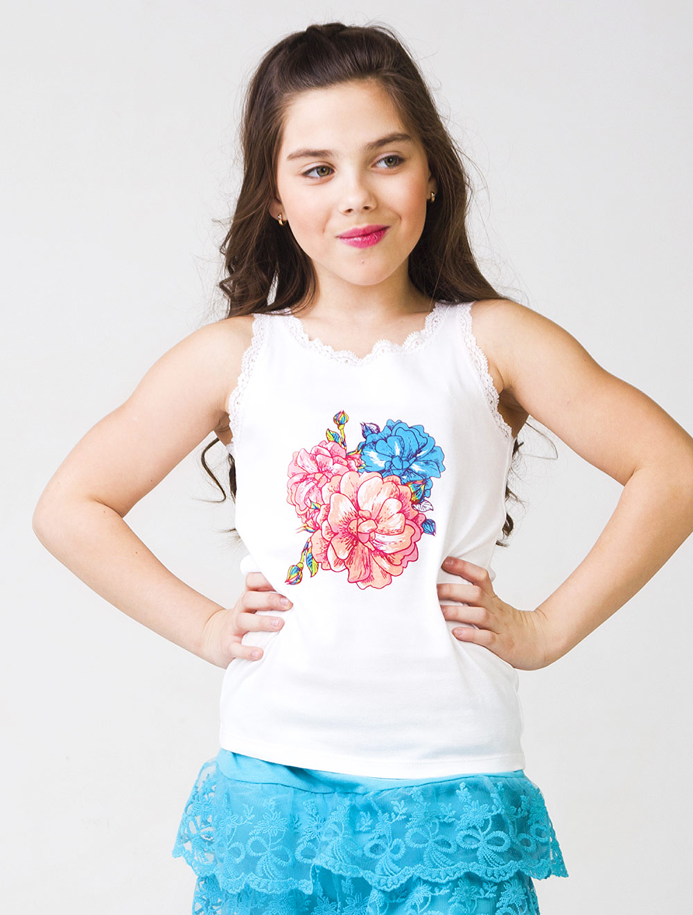 Описание: Топ из хлопкового трикотажа, декорированный эластичным кружевом и принтом.