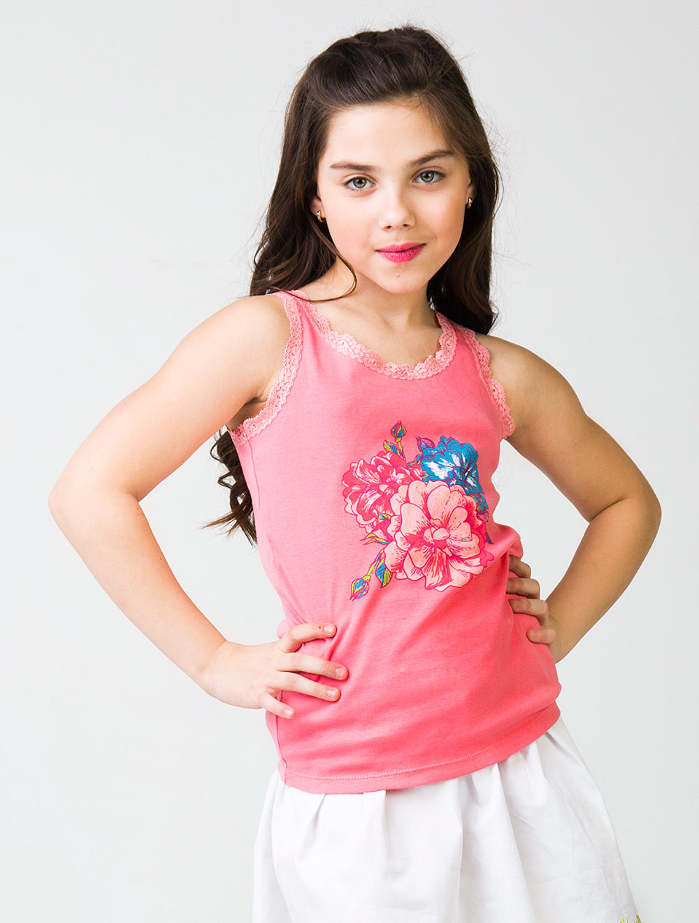 Описание: Топ из хлопкового трикотажа, декорированный эластичным кружевом и принтом.