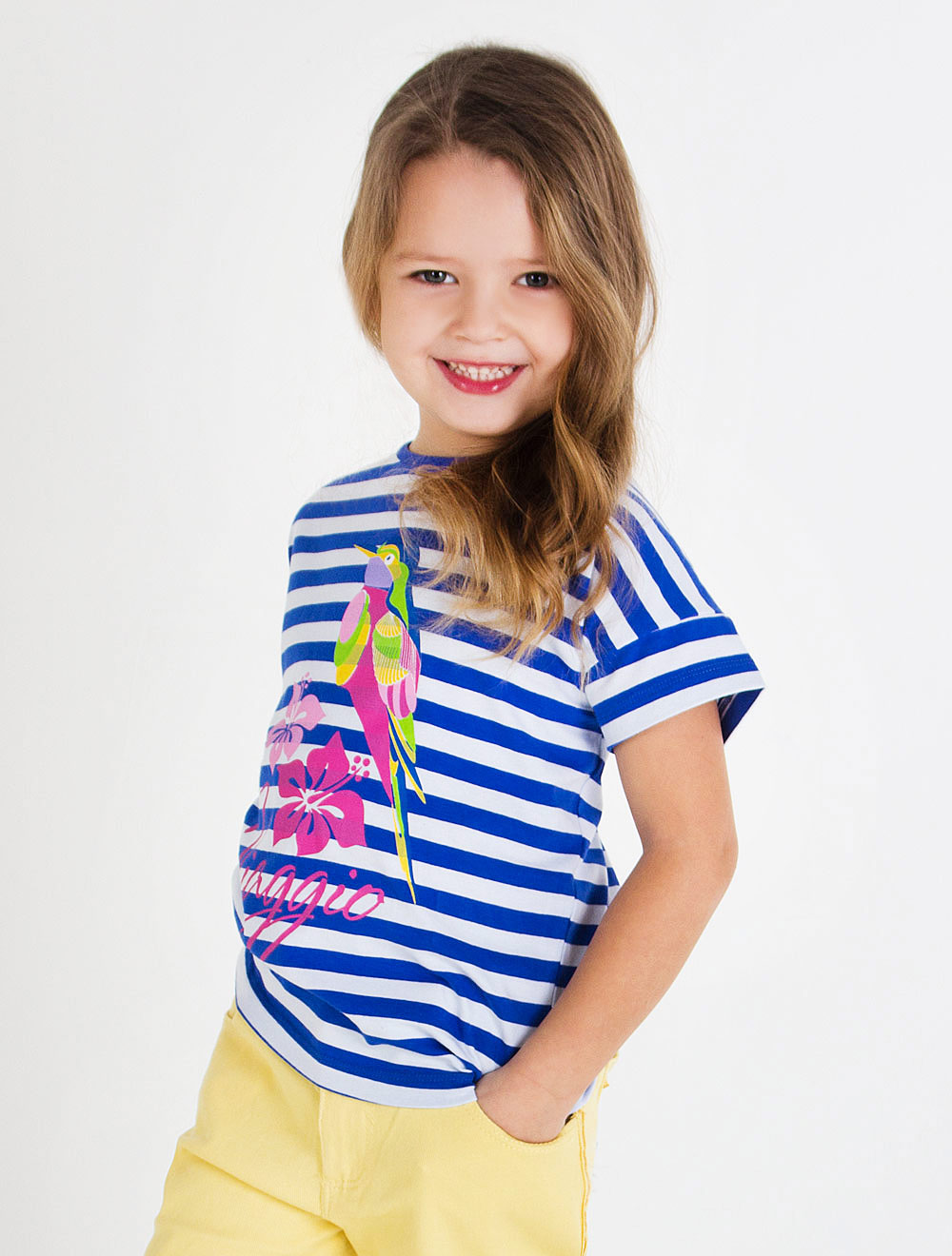 Описание: Футболка из хлопкового трикотажа с добавлением эластана, декорированная принтом.