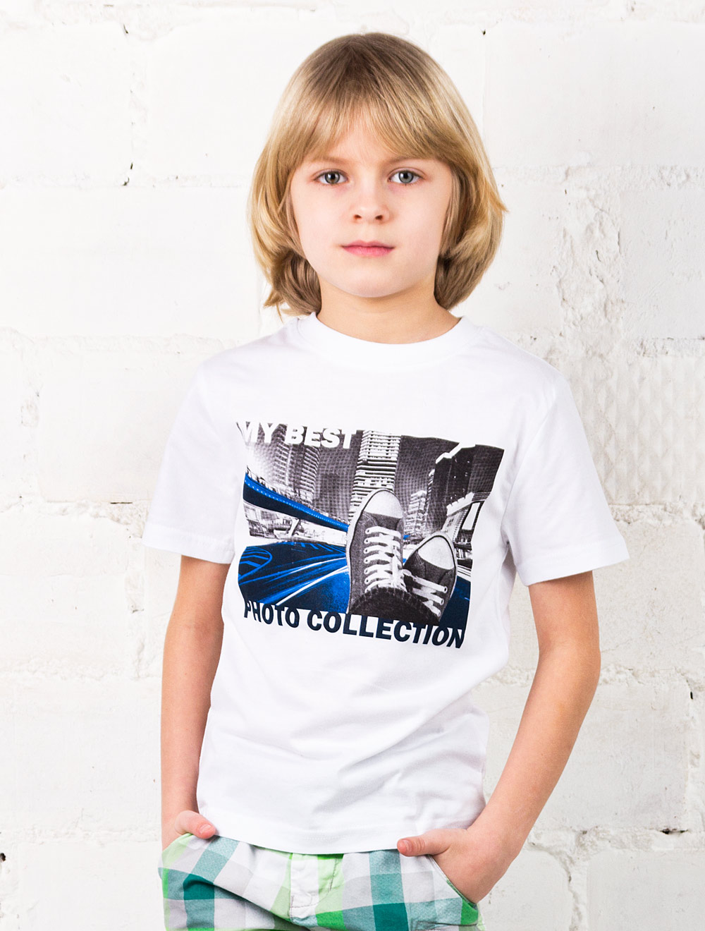 Описание: Футболка из хлопкового трикотажа, декорированная принтом.