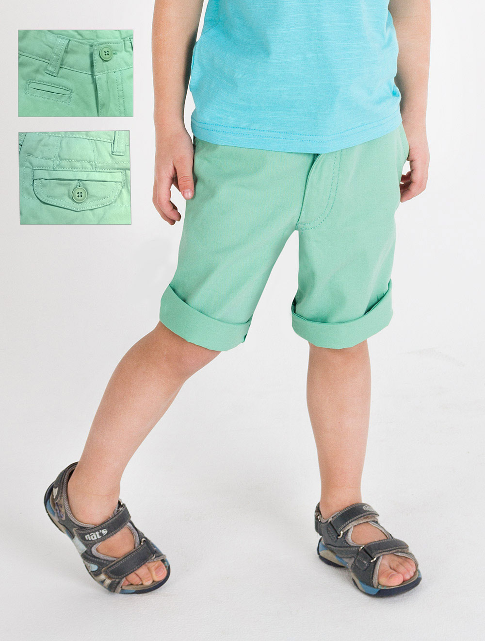 Описание: Шорты из плотной хлопковой ткани с эффектом стирки.