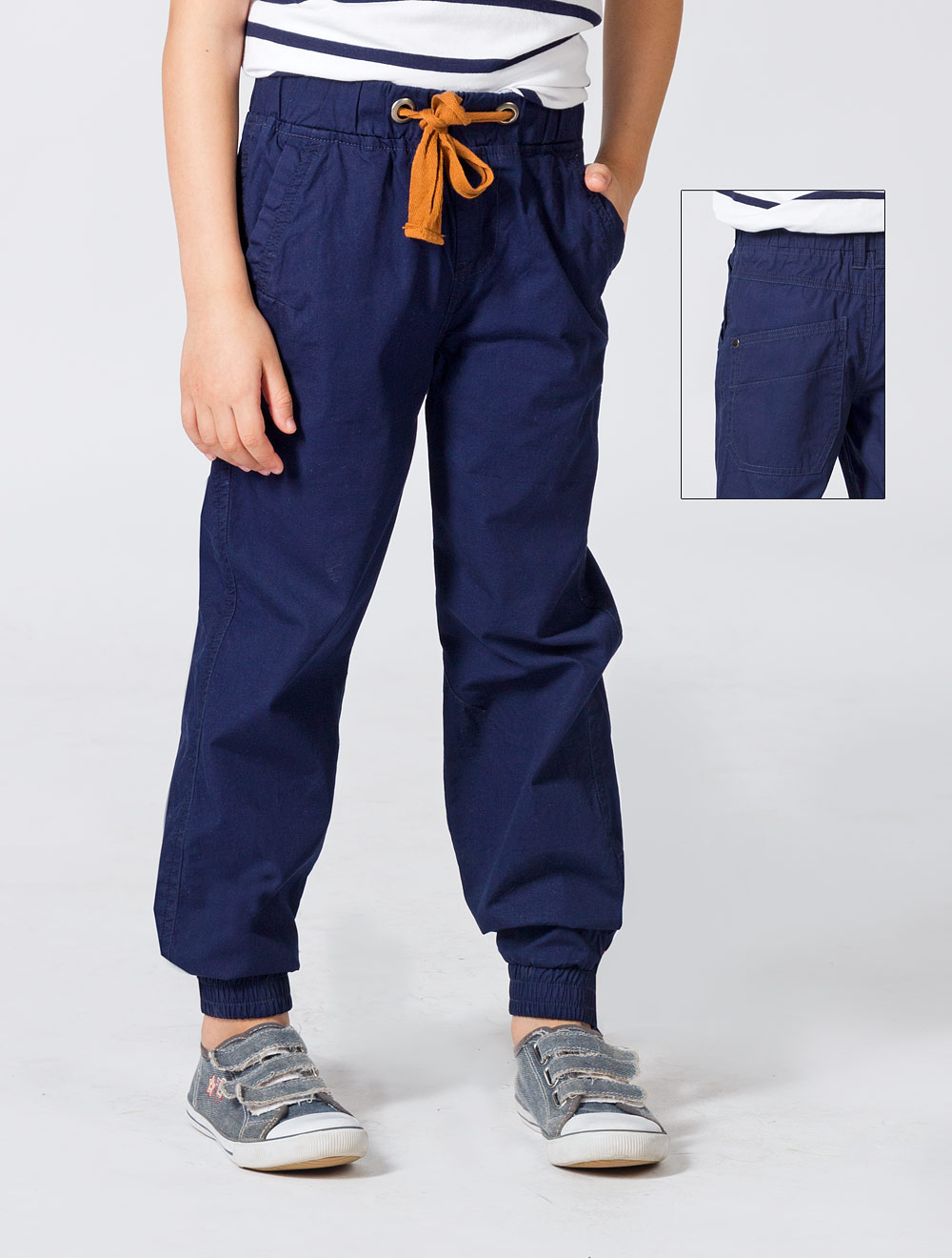 Описание: Тонкая хлопковая ткань. Толстая, местами контрастная, отделочная строчка. Пояс из контрастной тесьмы, низ брючин на резинке