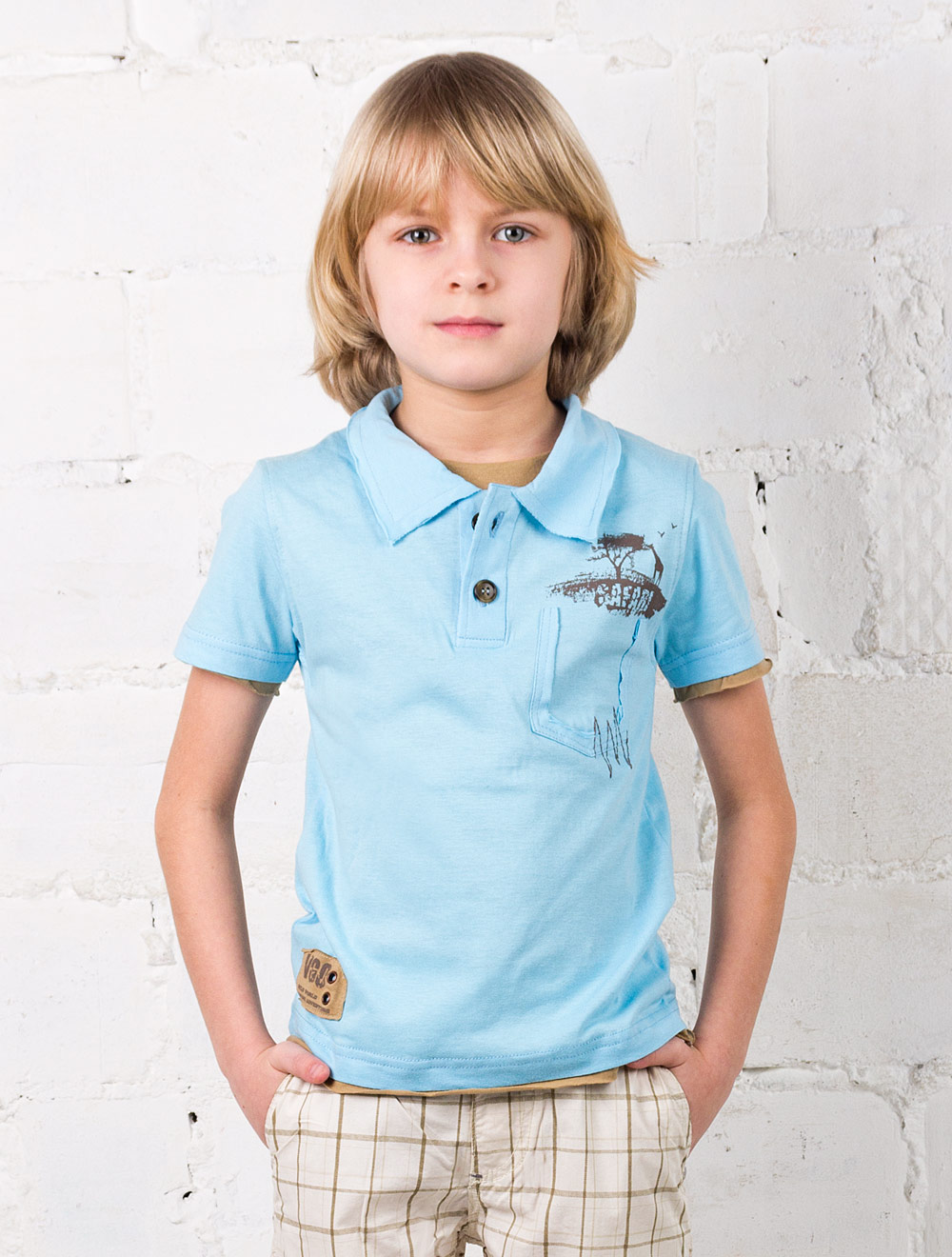 Описание: Поло, декорированное пинтом и нашивкой. Края с необработанным срезом. Пуговицы контрастного цвета "под орех".
