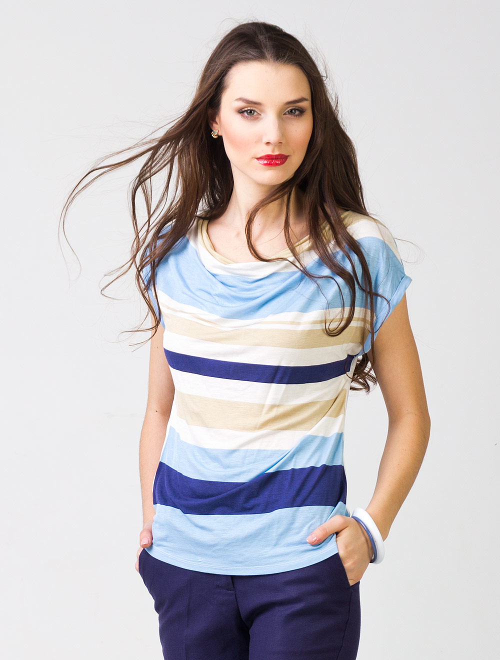 Описание: Перед выполнен из тонког вискозного трикотажа с эффектом драппировки у горловины, спинка от задней кокетки выполнена из тонкого полуматового атласа.