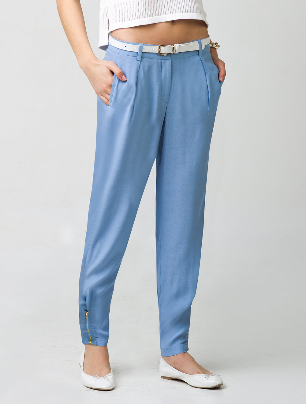 Описание: Фактурная вискоза. Сбоку внизу вставлены золотистые металлические молнии, благодаря которым можно менять силуэт изделия от свободного до "бананов".