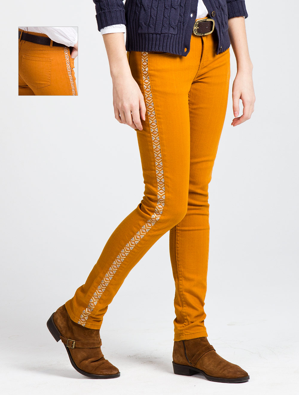 Описание: Выполнена из плотного эластичного "джинсового" хлопка, нижняя линия украшена тесьмой с этническим узором, расшитым матовыми пайетками, нижний срез аккуратно обработан во избежание зацепок на колготках.