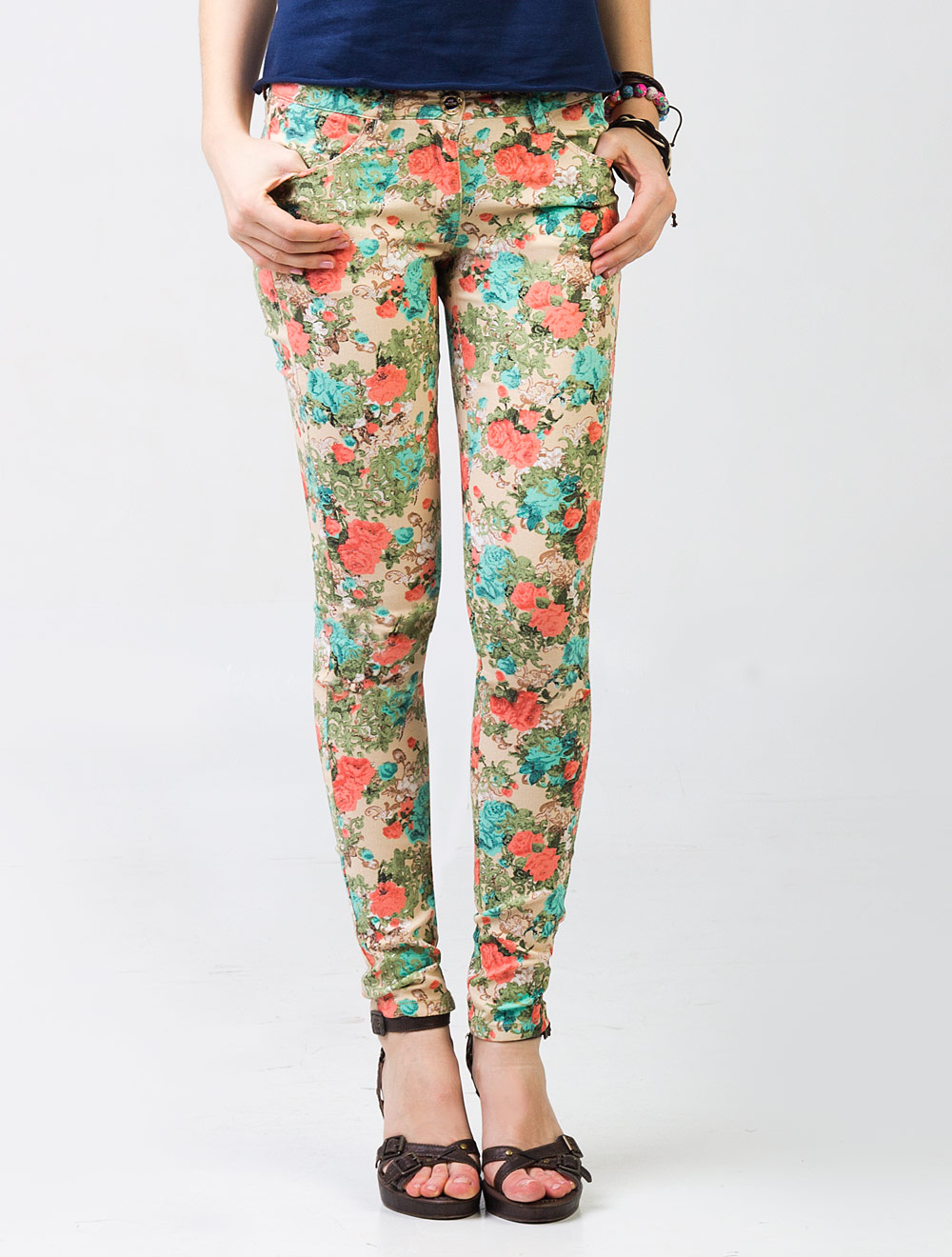 Описание: Брюки классического джинсового покроя из очень эластичного материала "джинсовой фактуры" - с принтом под "гобелен, расшитый розами."