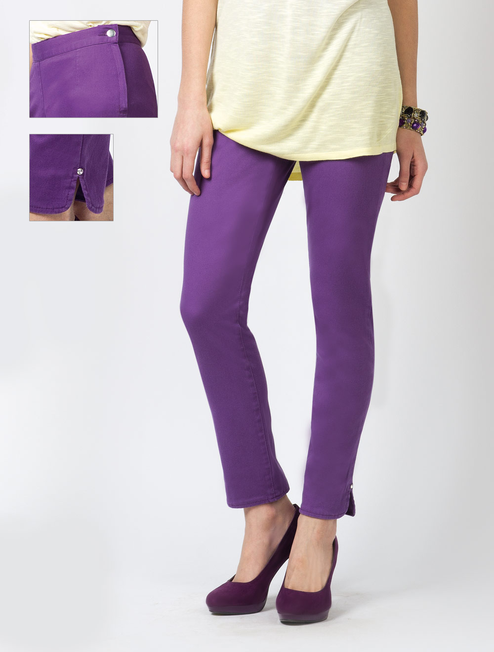 Описание: Узкие брюки из эластичного хлопка. Застежка в боковом шве. По бокам внизу оформлены декоративные уголки и небольшие разрезы.