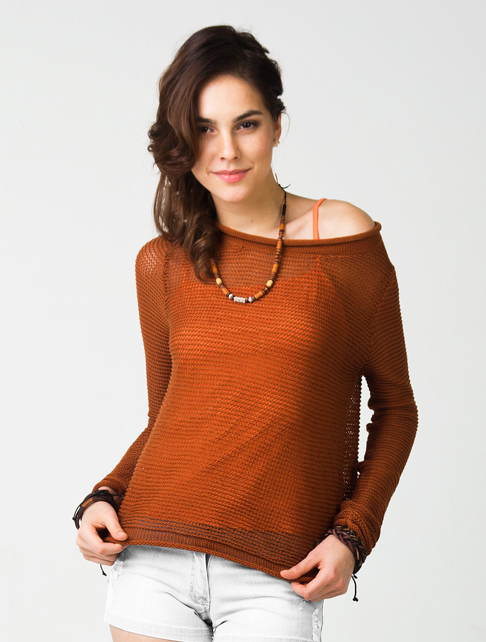Описание: Вязка сеткой тонкими хлопковыми нитями. Изделие свободного силуэта, не длинное, прозрачное и легкое.