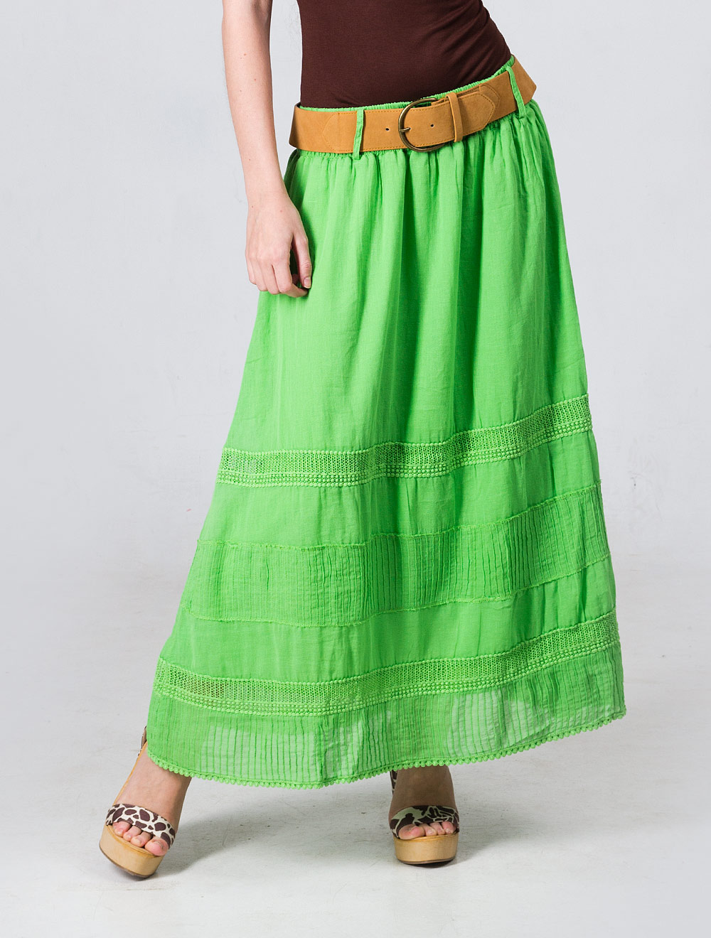 Описание: Тончайшее хлопковое полотно в основе и еще более тонкая подкладка. Юбка украшена кружевом из хлопка. Пояс выполнен из ряда эластичных нитей. В стоимость входит ремень из иск.замши.