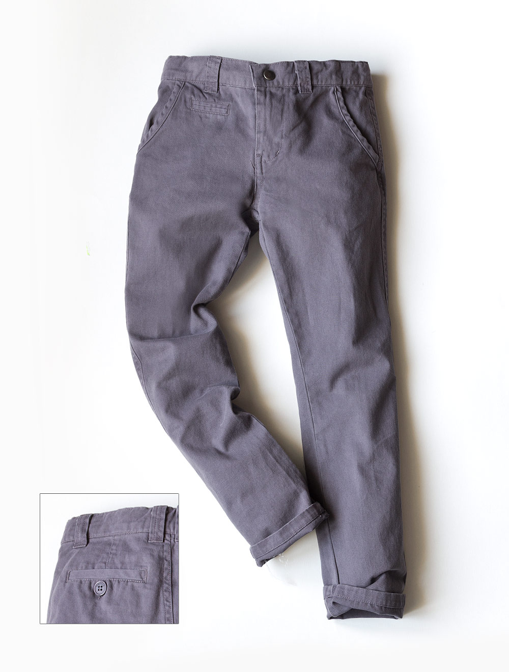 Описание: Брюки из хлопка. Пояс регулируется внутренней резинкой и пуговицами.