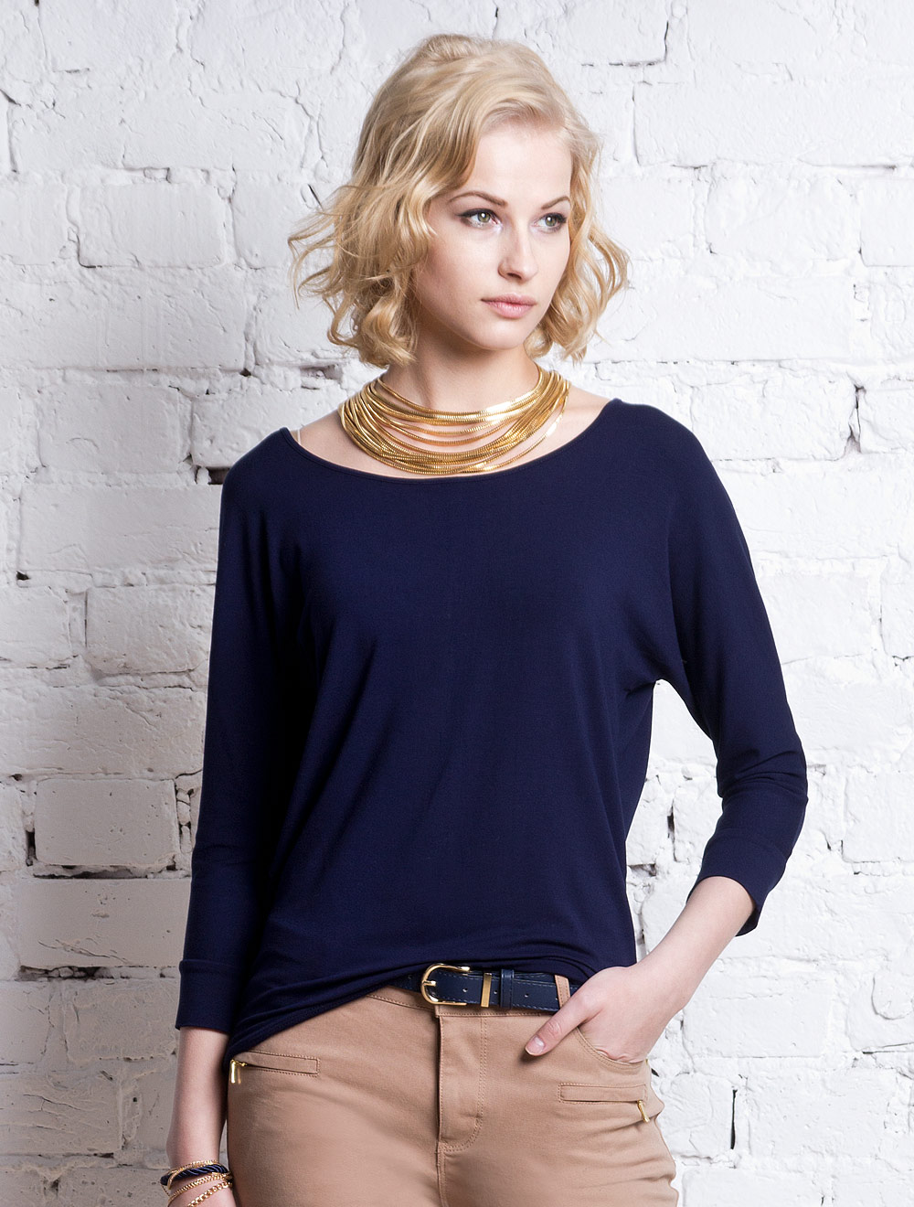 Описание: Тонкое вискозное полотно. Цельнокроеный рукав "летучая мышь" длиной 3/4. Свободный силуэт вверху и плотное прилегание на уровне бедер.