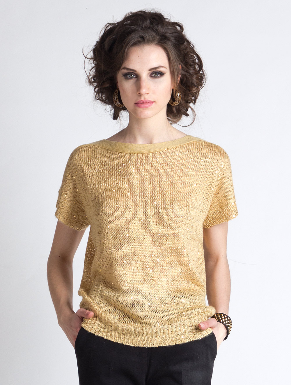 Описание: Джемпер тонкой вязки с золотистым пайетками