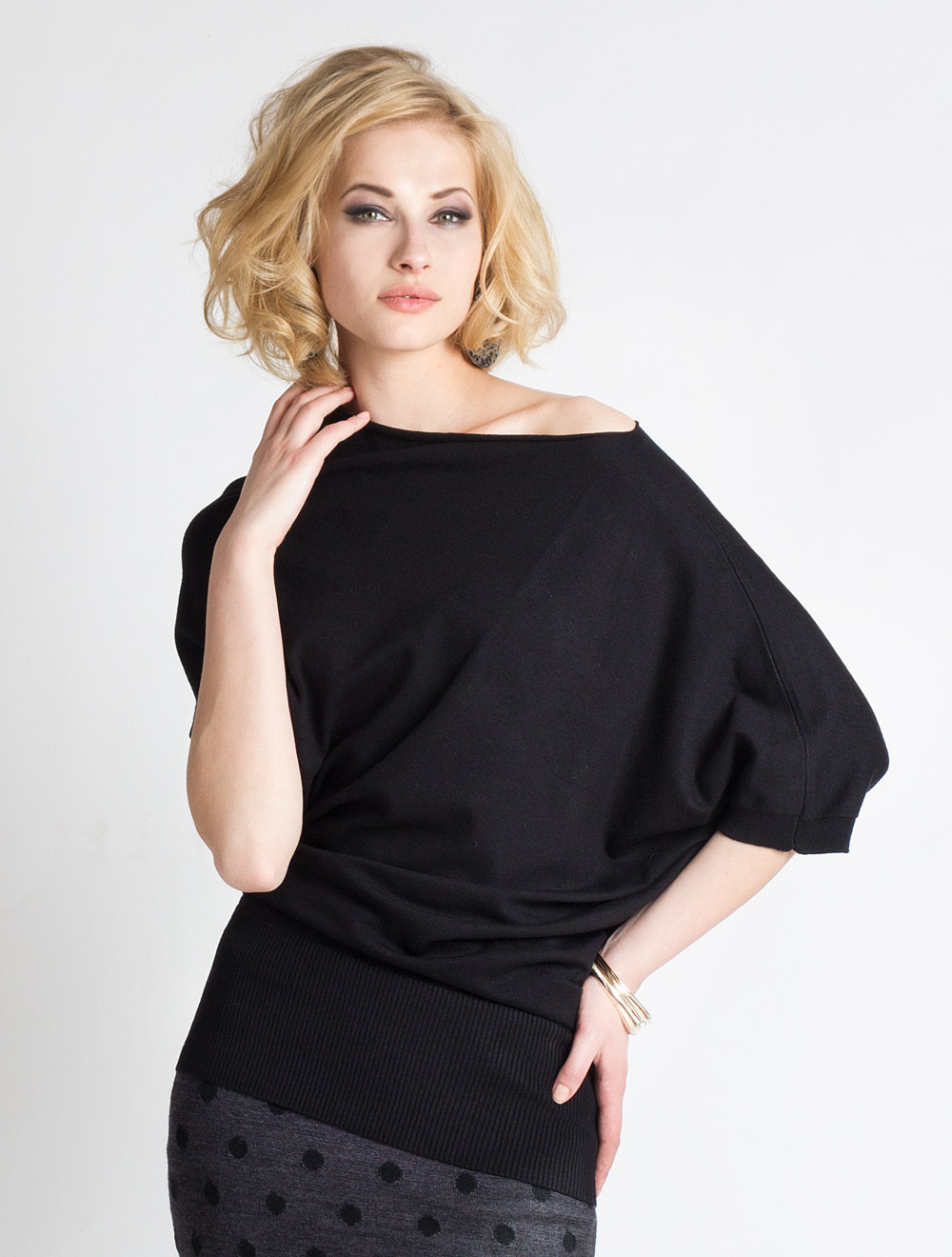 Описание: Тонкая, пластичная вязка. Ассиметричная конструкция изделия позволяет драпировать его различными способами.