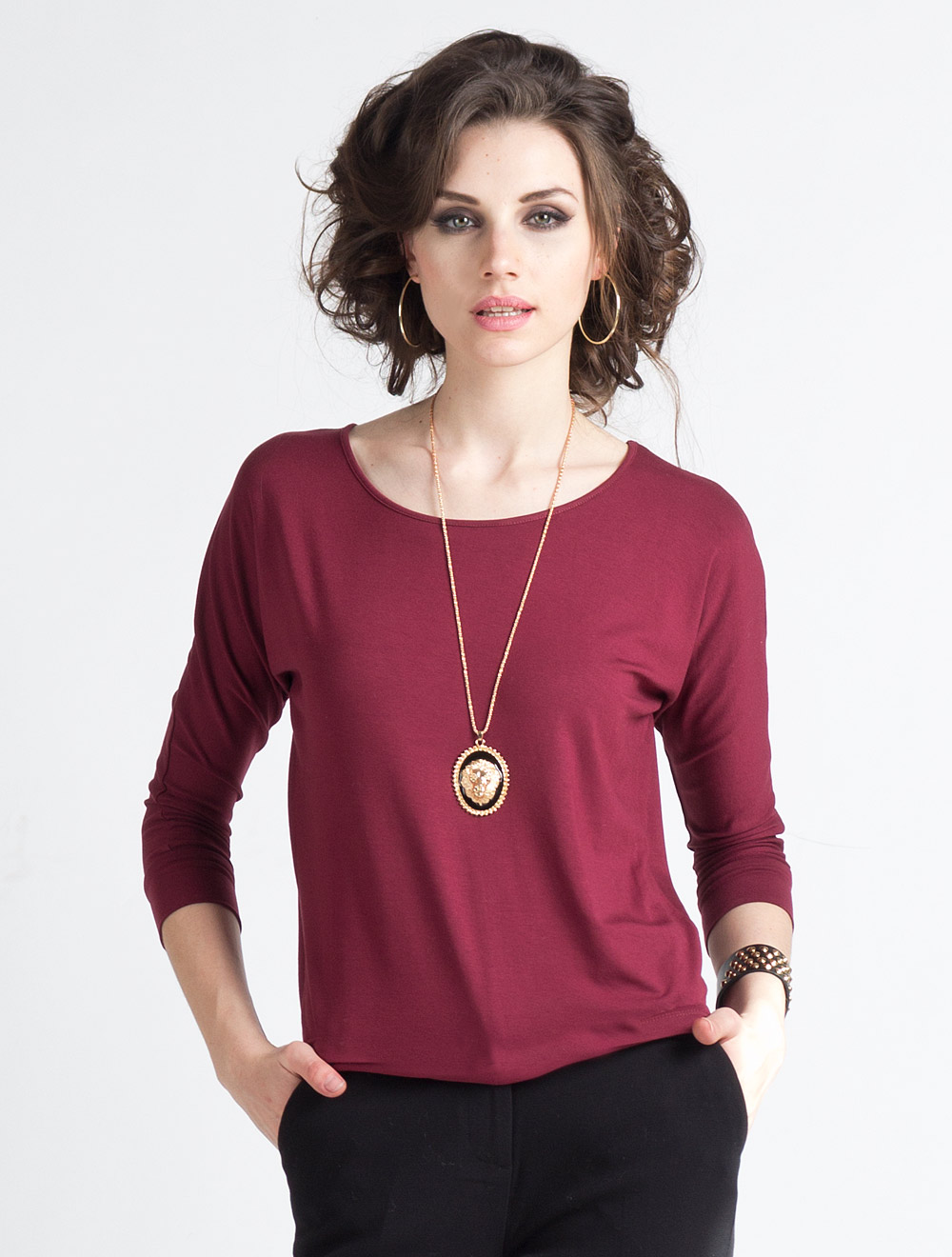 Описание: Тонкое вискозное полотно. Цельнокроеный рукав "летучая мышь" длиной 3/4. Свободный силуэт вверху и плотное прилегание на уровне бедер.