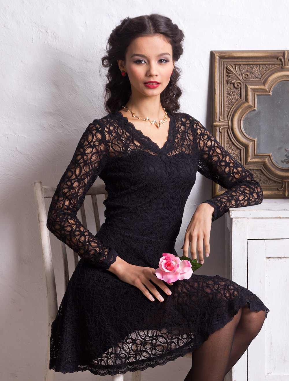 Описание: Выполнено из кружевного эластичного полотна на тонкой трикотажной подкладке. Длина изделия в больших размерах - за колено.