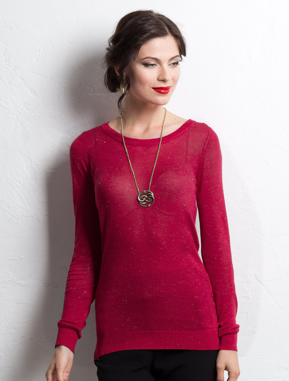 Описание: Тончайшая вязка с мелкими ворсинками легкого перламутрового люрекса. На спинке разрез в виде капли и бант из матового шифона