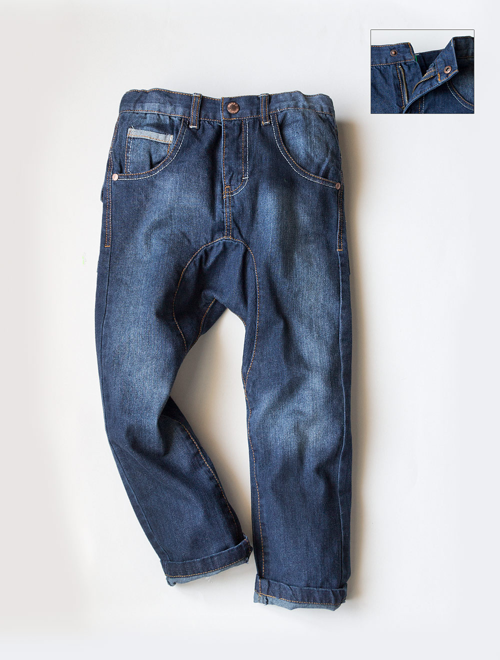 Описание: Джинсы с деталями из ткани контрастного цвета.