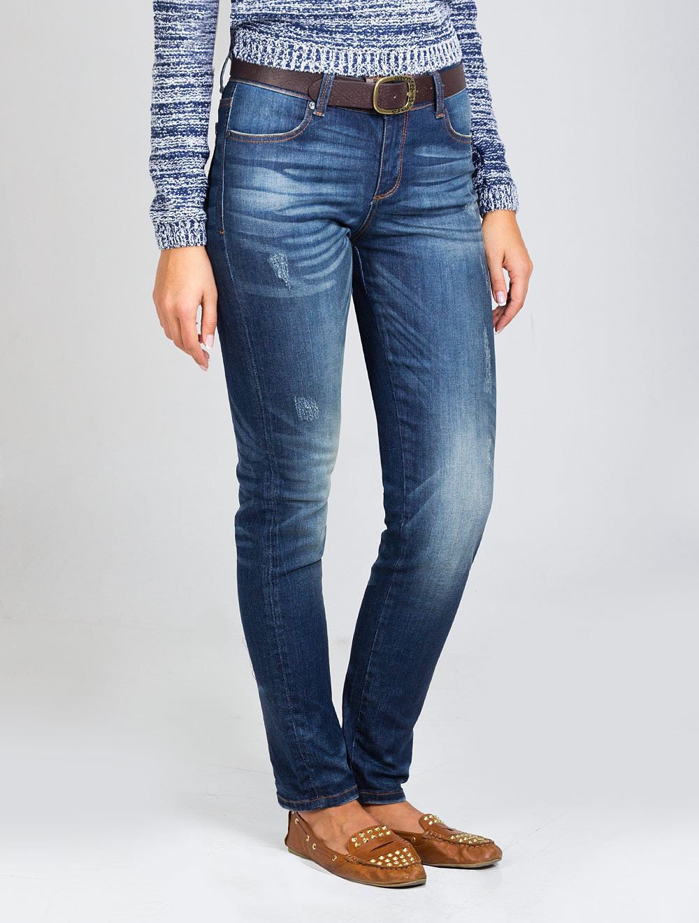 Описание: Искусственная потертость и декоративные повреждения ткани, отстрочка контрастными нитками, эластичная ткань