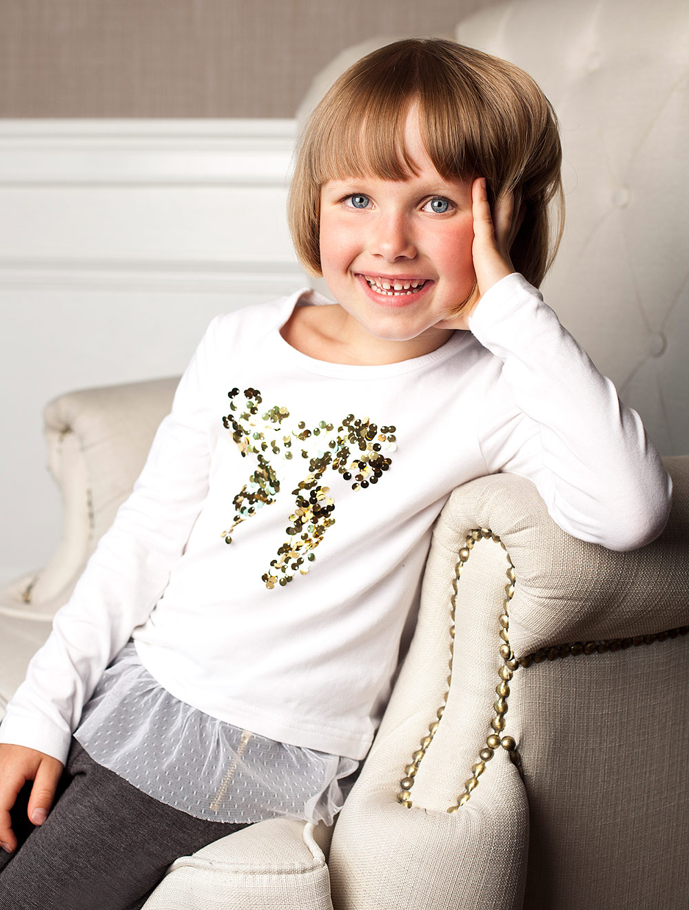 Описание: Футболка из трикотажного полотна с вышивкой пайетками.