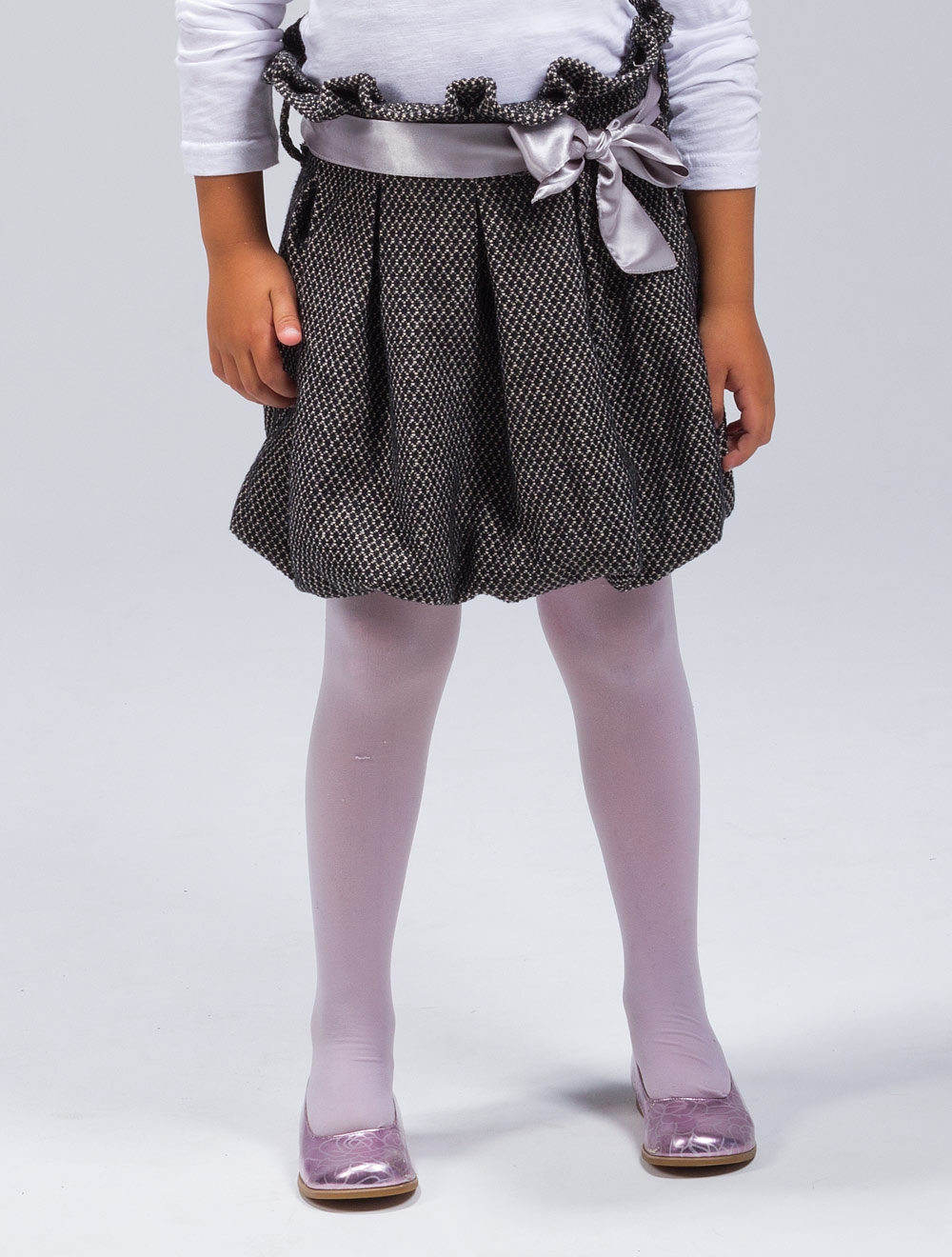 Описание: Юбка из фактурной ткани, украшенная атласным поясом.