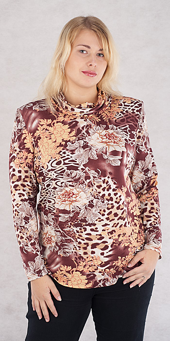Описание модели: Блуза женская из трикотажного полотна полуприлегающего силуэта с воротником "хомут". Рукав длинный с подплечником. По бокам разрезы длиной 10 см. Длина изделия около 65 см.