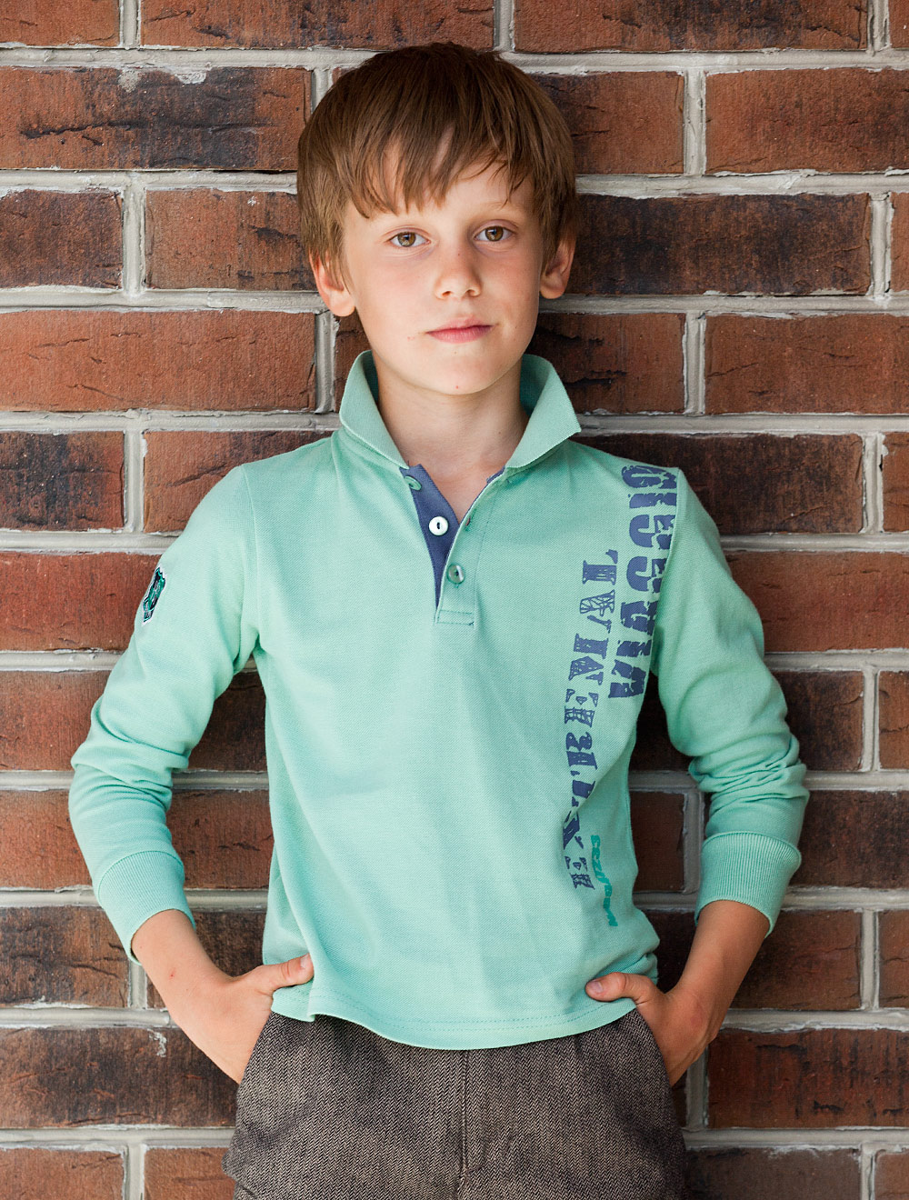 Описание: Поло из ткани "пике", декорированное контрастными деталями, нашивкой и принтом