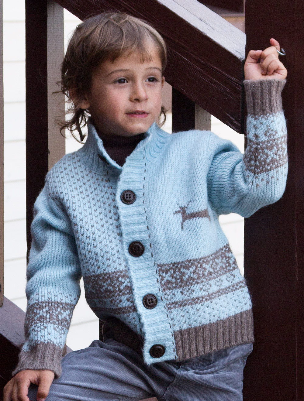 Описание: Вязаный жакет с орнаментом. Застежка на пуговицы.