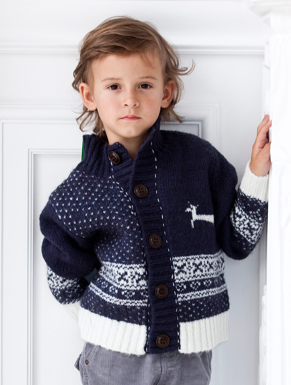 Описание: Вязаный жакет с орнаментом. Застежка на пуговицы.