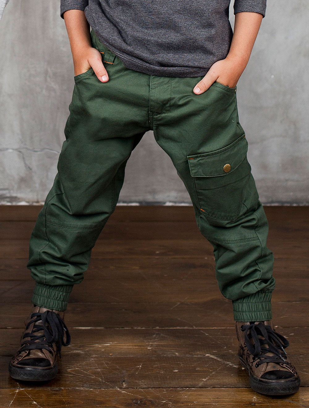 Описание: Брюки из плотного хлопка с эффектом стирки.