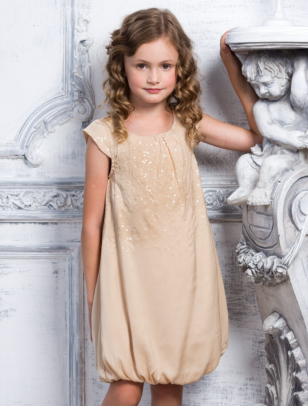 Описание: Платье-баллон свободного кроя. Верхняя часть расшита мелкими пайетками. Подкладка 65% хлопок 35% ПЭ