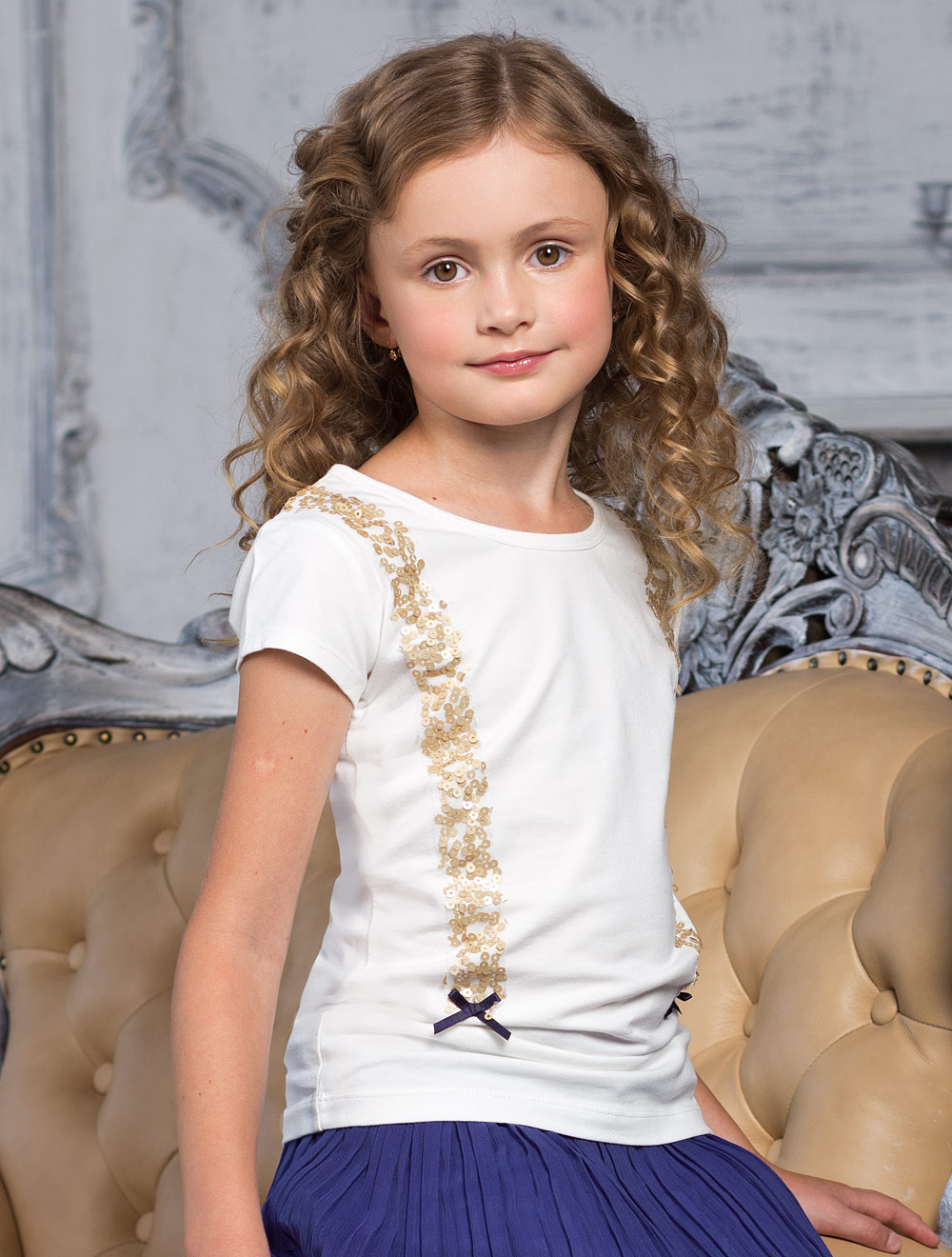 Описание: На передней и задней части футболки ленты из сетки, вышитые пайетками