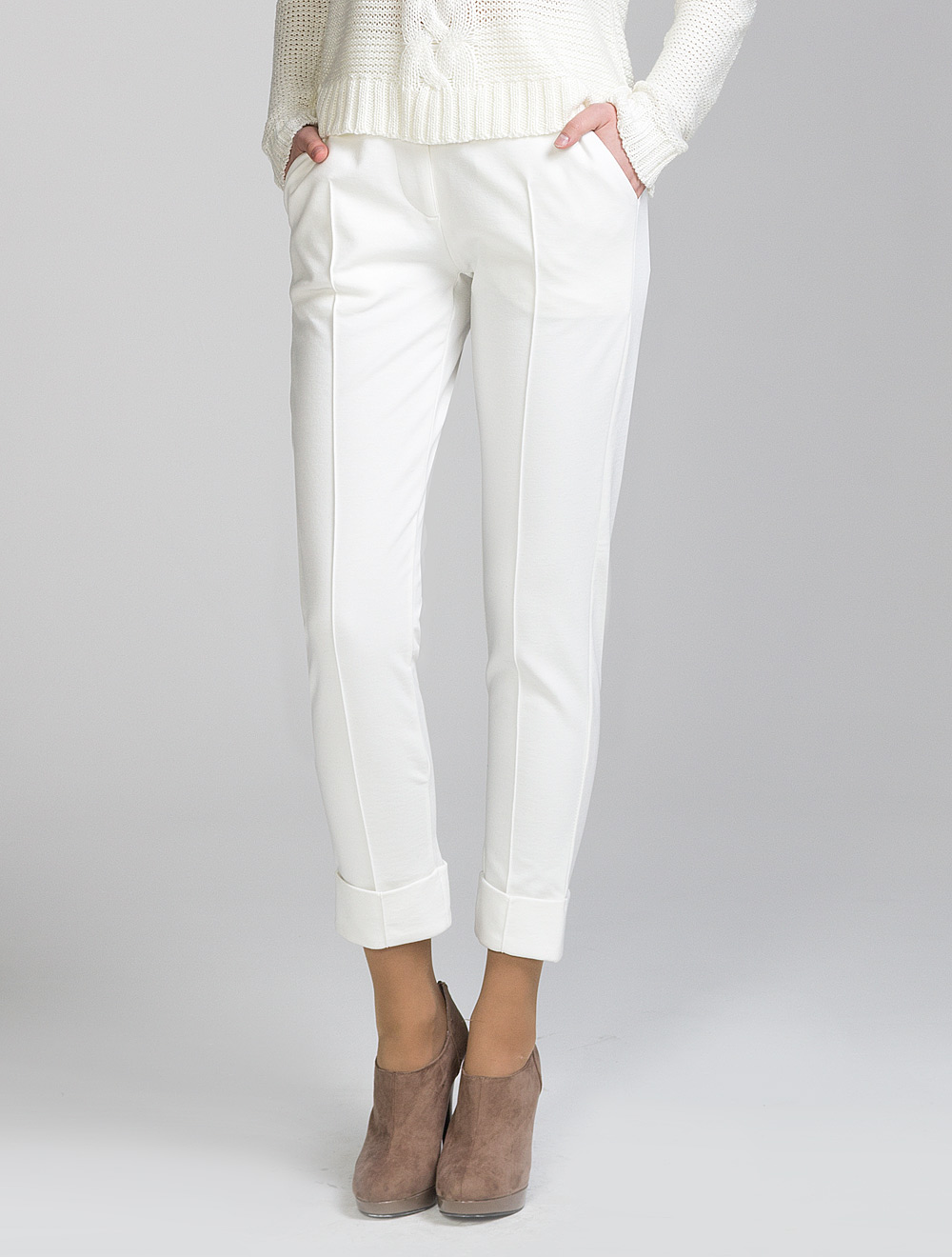 Описание: Выполнены из плотного эластичного джерси, внизу широкие манжеты, рекомендуется утюжка со стрелками, передняя стрелка отстрочнена на 1 мм.
