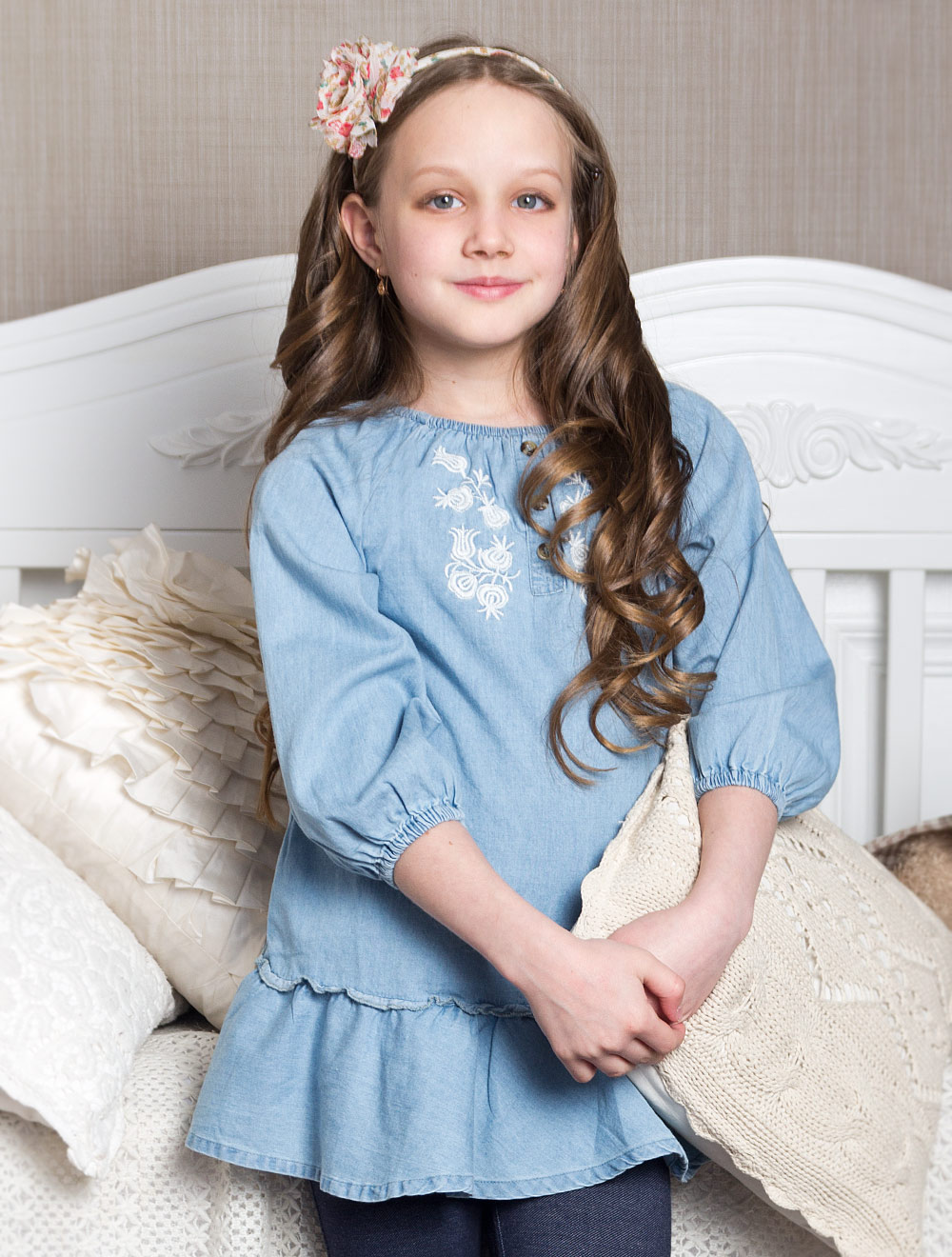 Описание: Ворот собран на резинку и украшен рядом пуговиц, вышивка на груди
