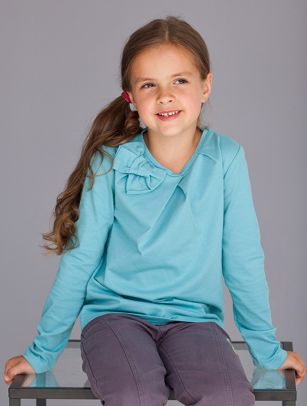 Описание: Футболка из эластичного хлопкового трикотажа, декорированная бантом из основного полотна.