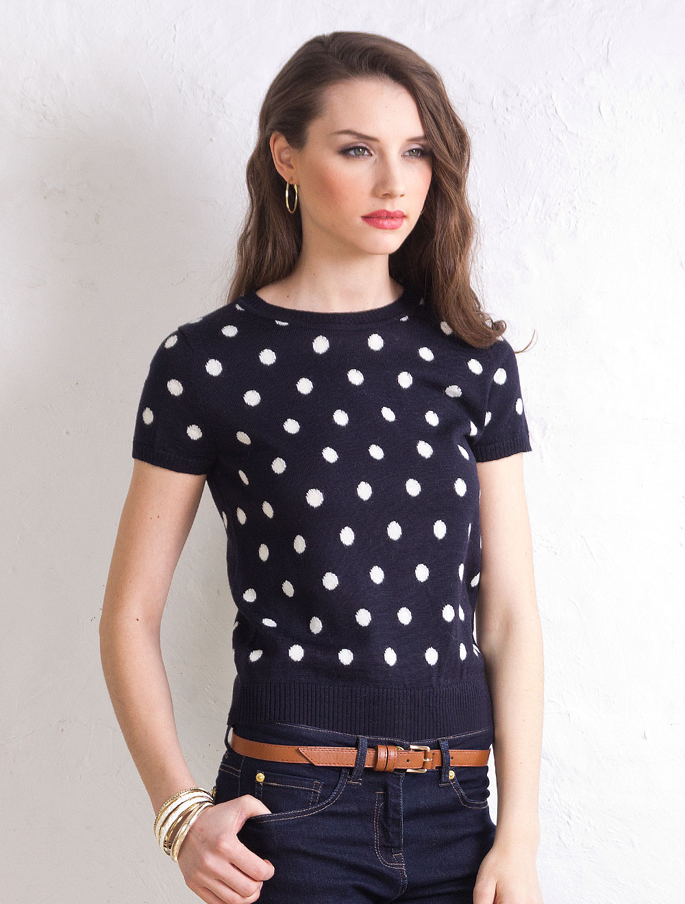 Описание: Шерстяная вязка средней плотности. Рисунок-горошек вывязан из той же пряжи белого цвета.