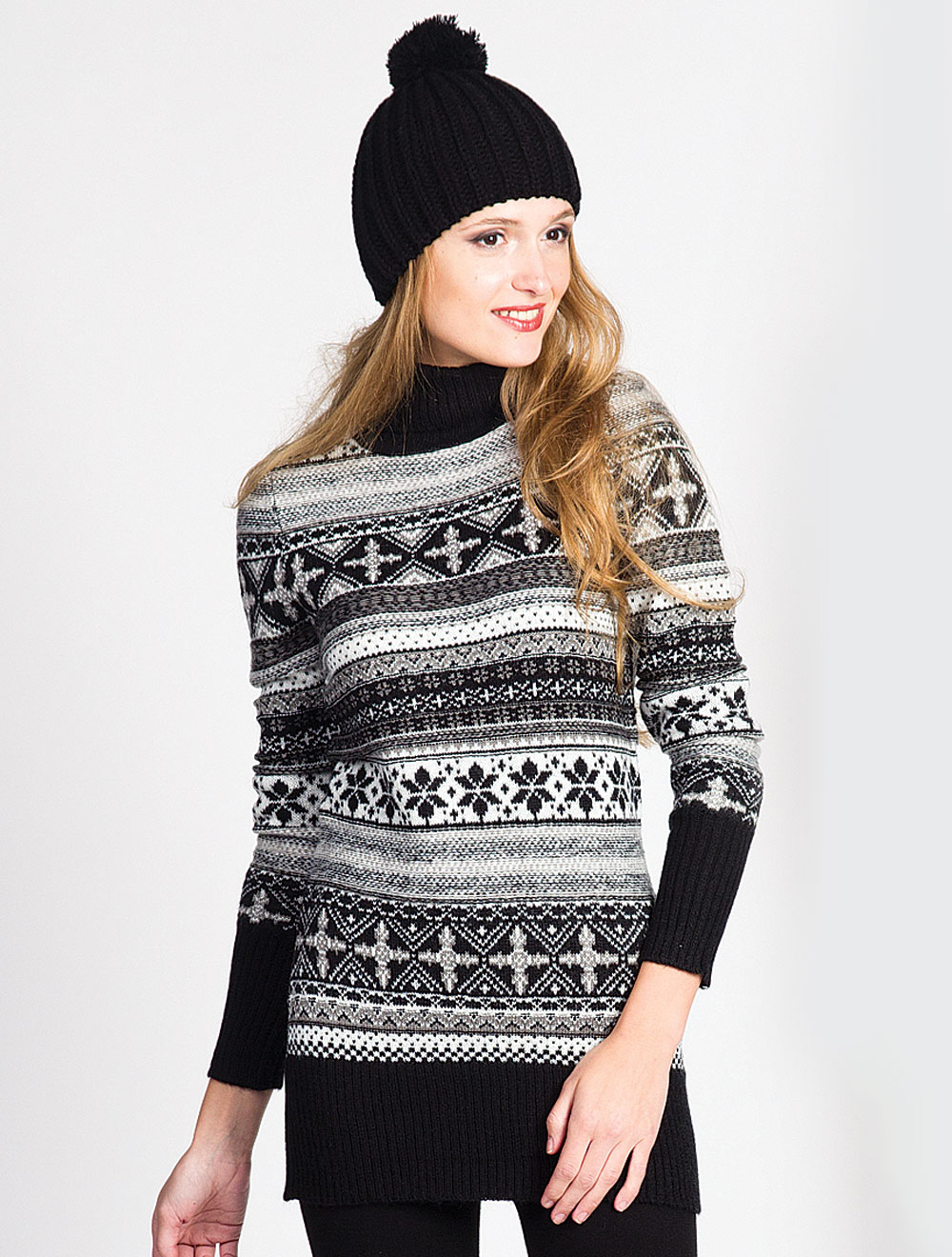 Описание: Теплое изделие с ворсом, благодаря наличию мохера в пряже, трендовое исполнение "скандинавского" узора частично на изнанку