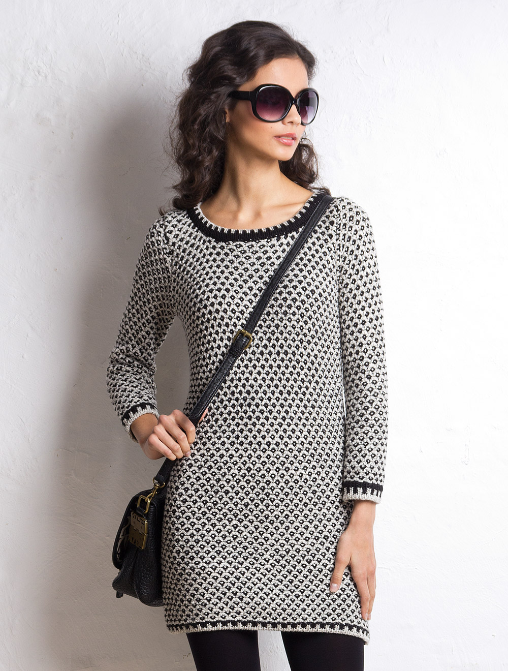 Описание: Крупная, фактурная и плотная вязка из мягкой пряжи. Предлагаем носить, как миниплатье, или как удлиненный джемпер с узкими брюками.