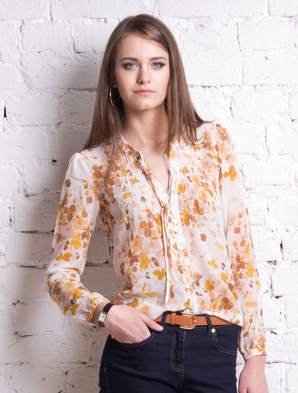 Описание: Плотный полупрозрачный шифон. Передняя часть украшена отделочными строчками и тонкой вышивкой - мережкой. Горловина в форме узкой стойки завязывается на завязках из основной ткани.