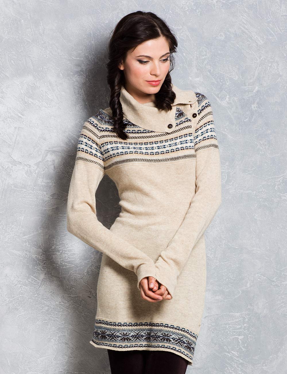 Описание: Мягкая и теплая пряжа с ангорой средней плотности. Большой ворот на пуговицах, трендовое исполнение "скандинавского" узора частично на изнанку.