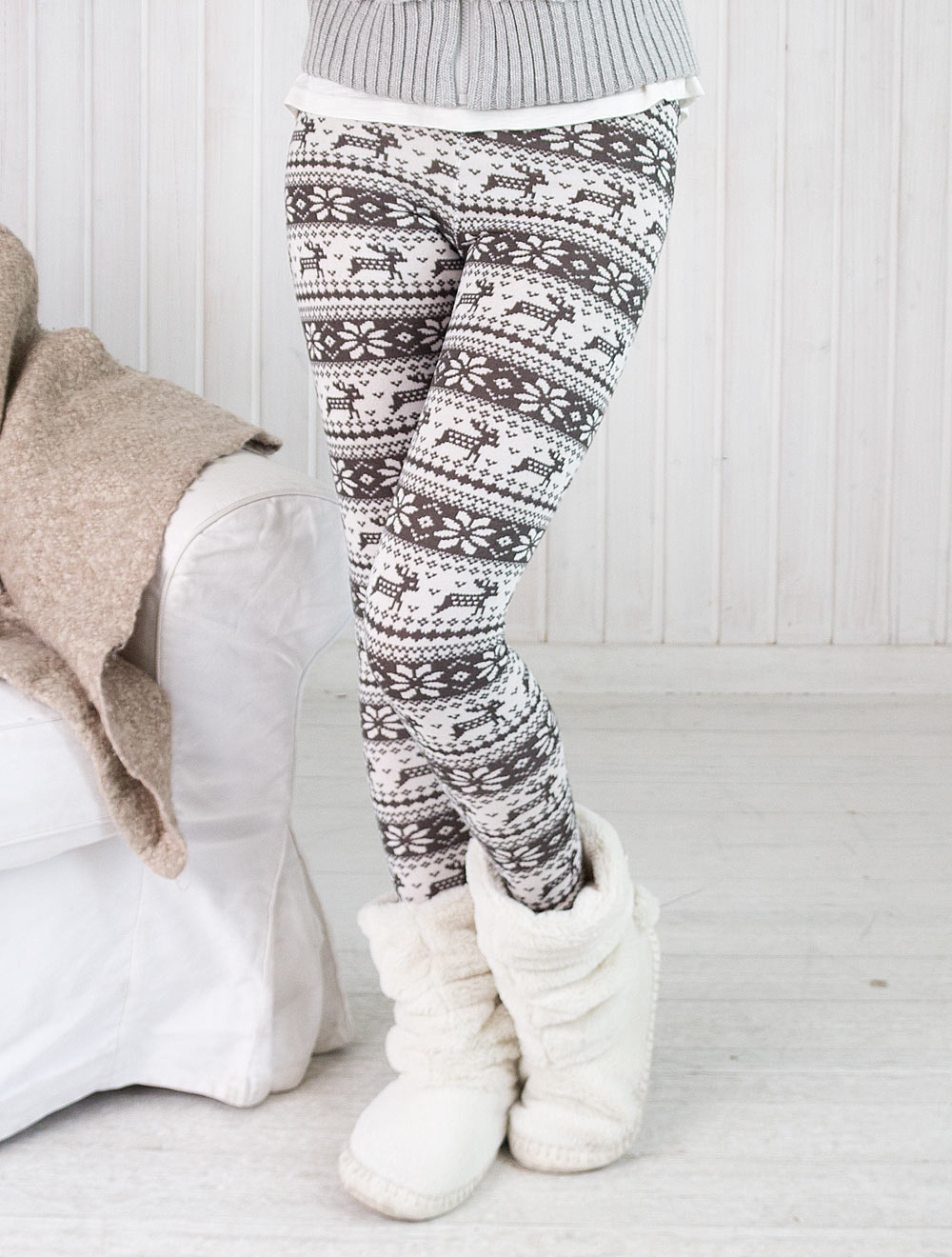 Описание: Леггинсы из мягкого трикотажа с принтом "северный узор", талия на резинке.
