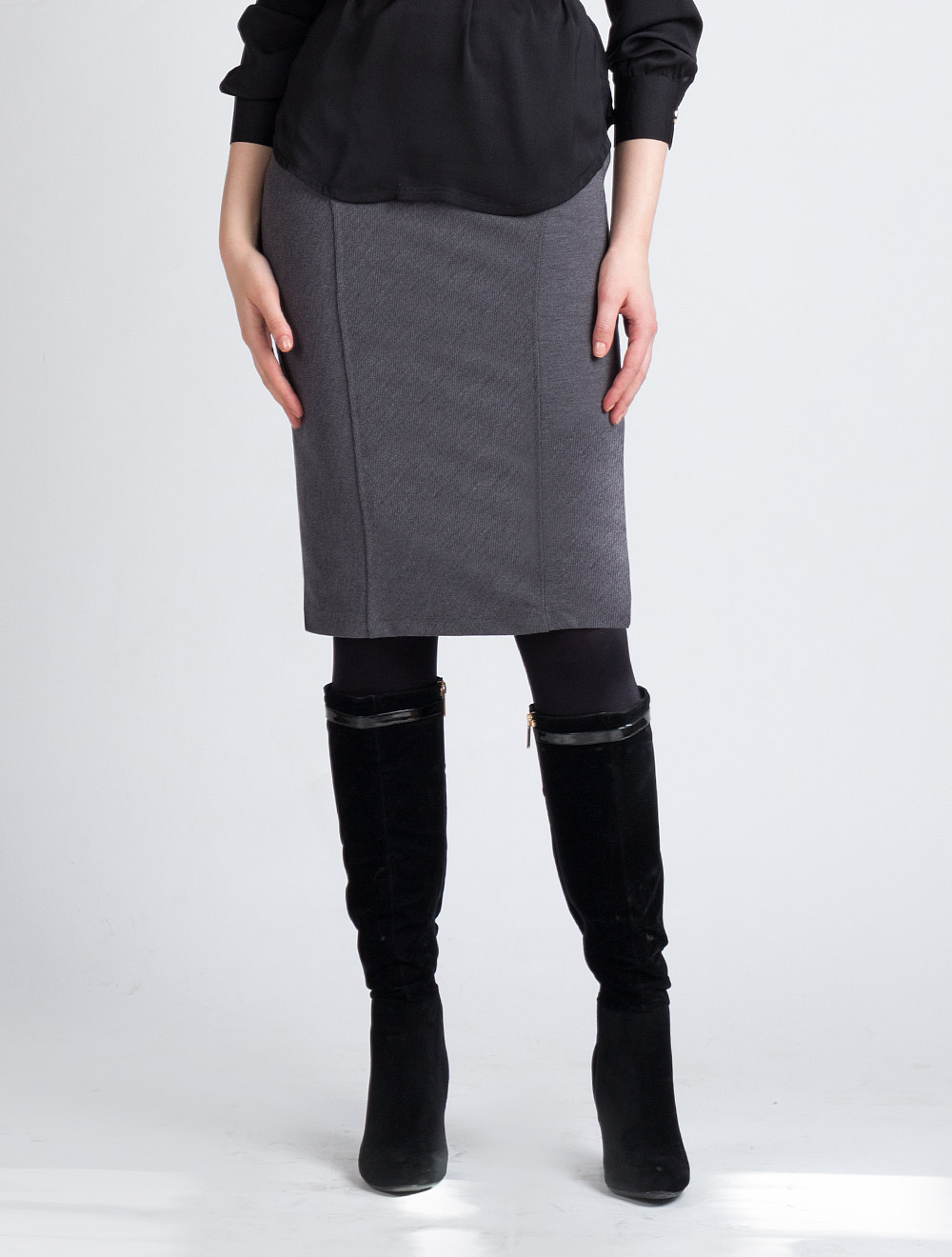 Описание: Плотная эластичная ткань в рубчик, скроена в разном направлении в деталях кроя.