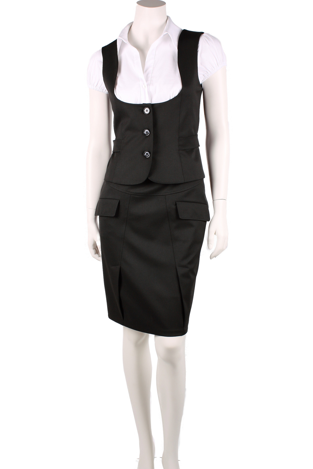 Жилет приталенный с глубоким вырезом и поясками