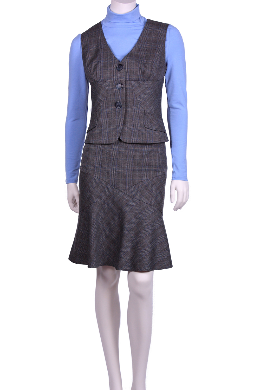 Жилет приталенный, с фигурными подрезами по переду и спинке, с клапаном в подрезе