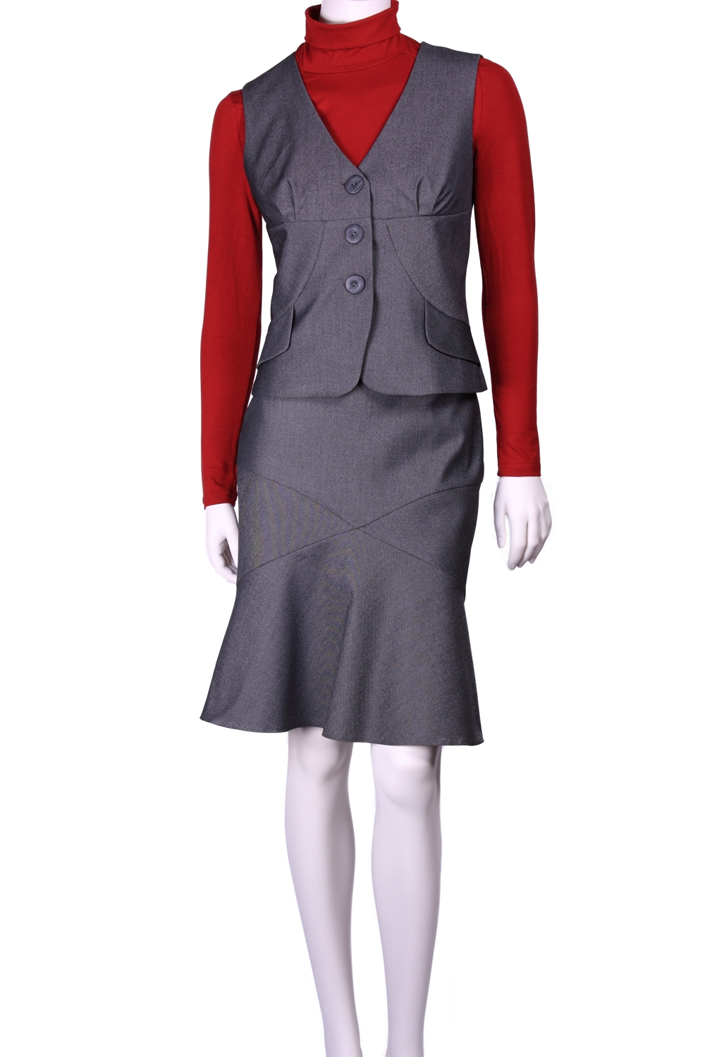 Жилет приталенный, с фигурными подрезами по переду и спинке, с клапаном в подрезе