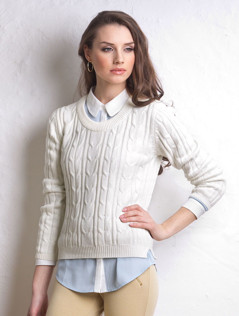 Описание: Крупная хлопковая вязка косы. Укороченное изделия с разрезами по бокам. Актуально смотрится в многослойных образах с блузами. Самостоятельно удобен для более спортивного стиля и комфортен к телу.