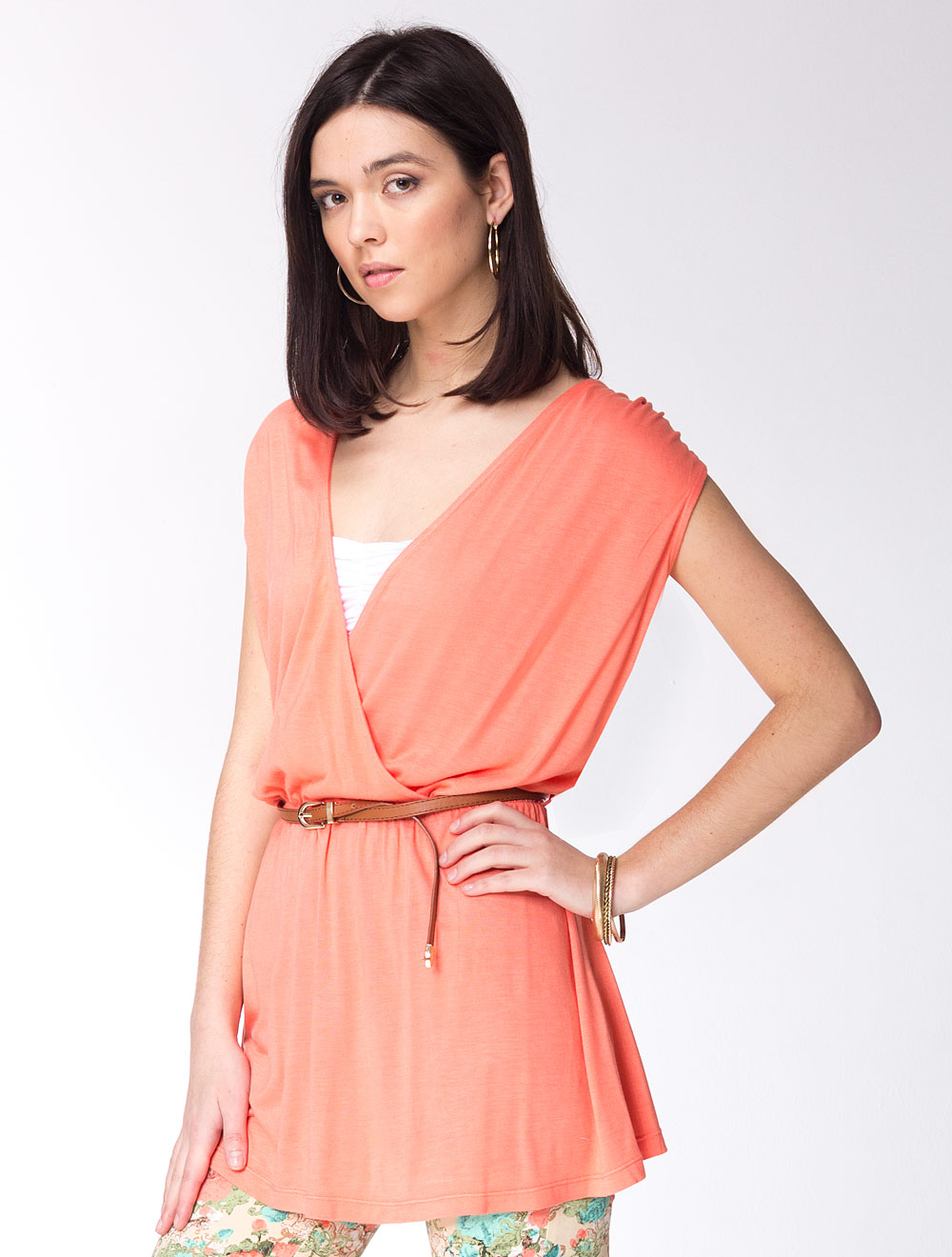 Описание: Вискозный трикотаж средней плотности, пояс собран на резинку, сборка по плечевым швам переда, в комплекте тонкий ремень из иск.кожи коричневого цвета. Мы предлагаем компоновать разные образы - с разными ремнями и топами внутри!
