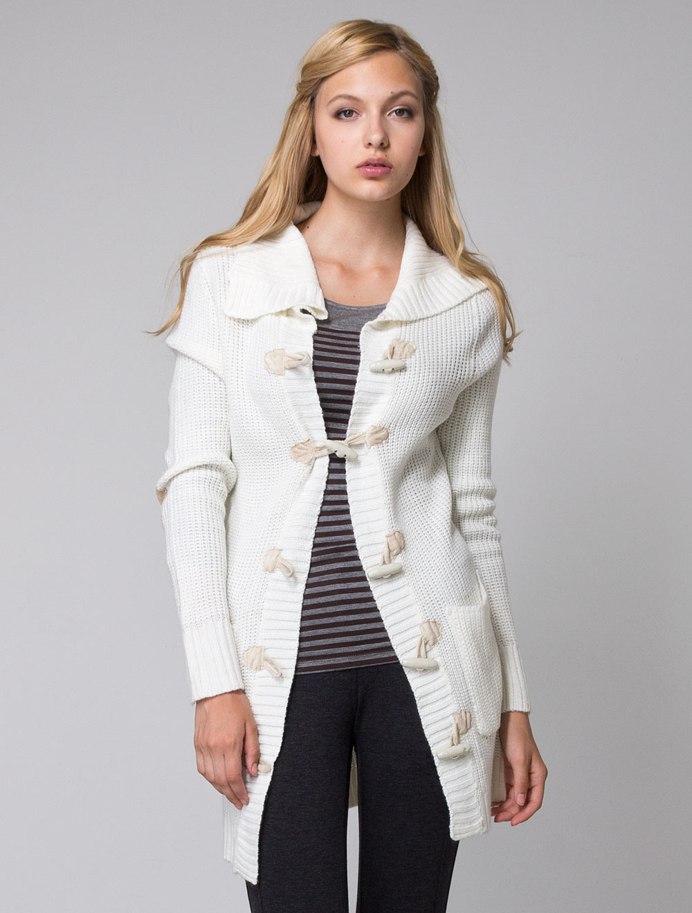 Описание: Жакет застегивается на крупные цилиндрические пуговицы, на локтях "заплатки" из искусственной замши. Внизу имеются накладные карманы.